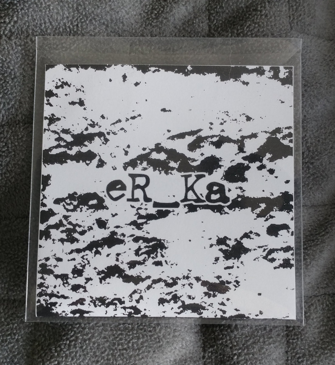 Hand-stamped 3" CD-r. Art printed on heavy card stock and enclosed in a vinyl pouch with a flap. Hand-numbered.